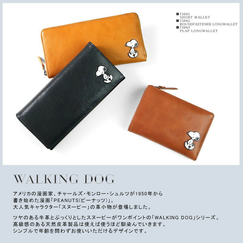 長財布 レディース メンズ スヌーピーがワンポイントになったおしゃれな本革財布 73043 女性用 男性用 PEANUTS ピーナッツ SNOOPY 牛革 革小物 WALKINGDOG フラップ かぶせ 送料無料 母の日 ギフト